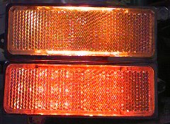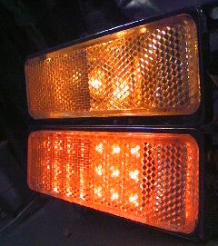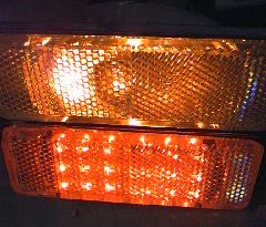 LEDサイドマーカー 製作品置き場 オーダー品 まずは社外品サイドマーカー うわっ暗っ ダメだ、納得出来ん 型を切り出して 基盤切り出して 埋め込んで ハイッ! 明るいよぉ〜 上が社外品 下がLED作品 まぁこんな感じです オレンジってっ感じです もちろん明るさも GOOD!!